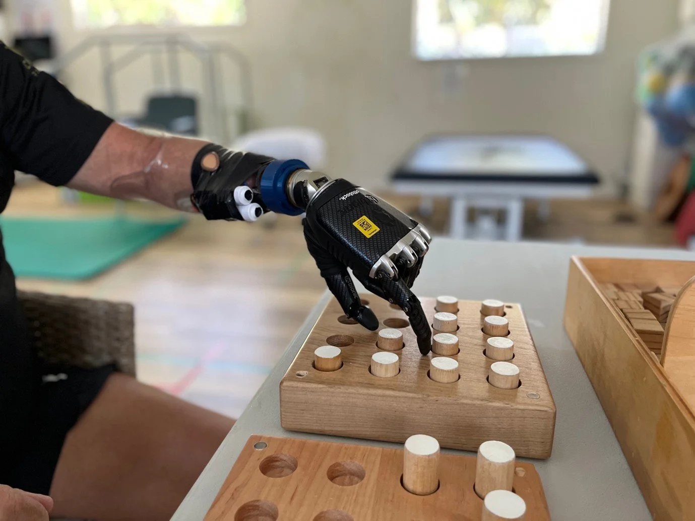 OTs train you to use the prosthesis in everyday tasks like using utensils, brushing teeth, or typing.
